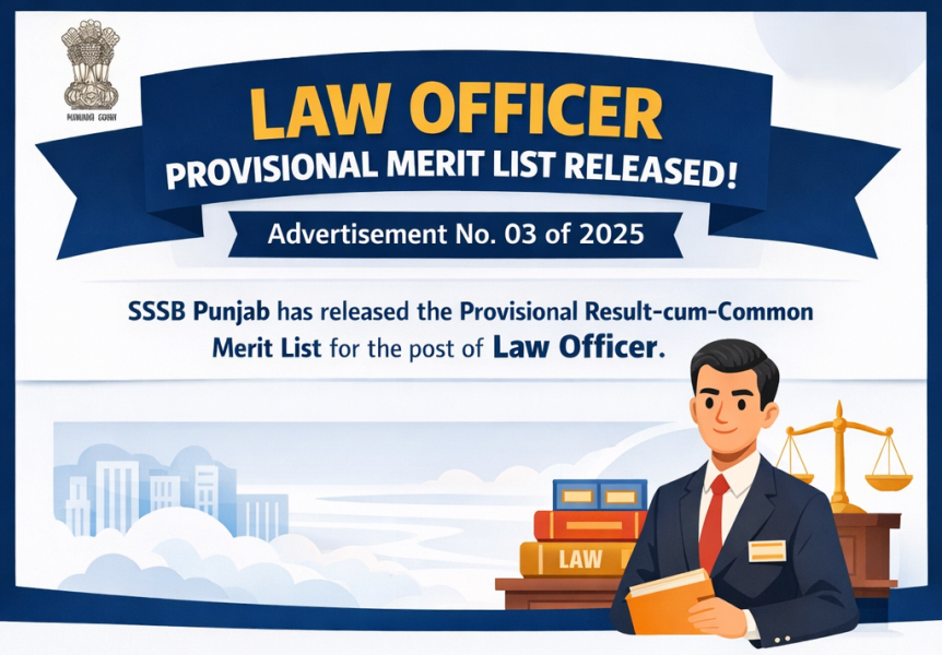 The Subordinate Services Selection Board, Punjab (SSSB Punjab) has officially declared the Provisional Result-cum-Common Merit List for the post of Law Officer under Advertisement No. 03 of 2025. Candidates who appeared in the recruitment examination can now check their result on the official website of the board. The result has been published in the form […]